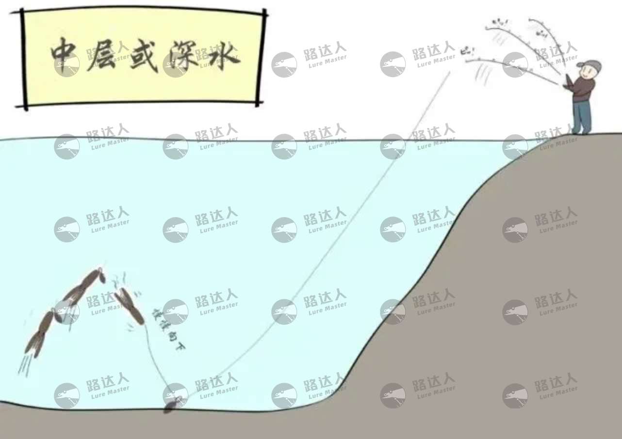 另一方面是釣深水區,人與釣組間是有一定傾斜角度的,軟餌“自由下落”時間變長,